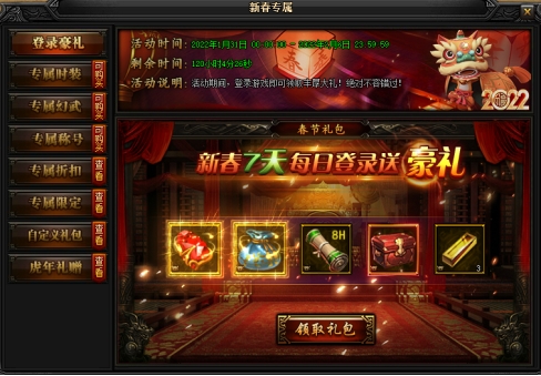 1)登录豪礼--活动期间,登录游戏即可领取丰厚大礼!