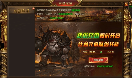 1.活动期间充值可在活动页面领取与充值金额等值的传奇币奖励