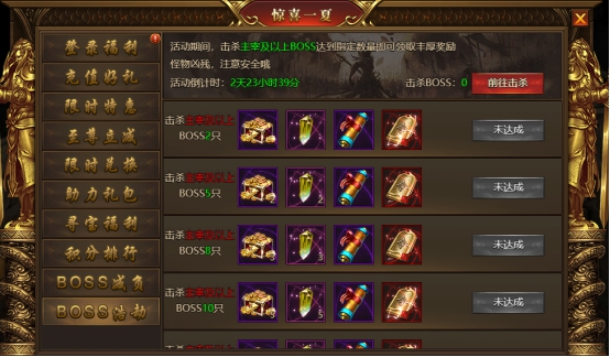 1.活动期间击杀1500级以上的boss和转生boss获得积分,活动结束后更加排行邮件发送奖励