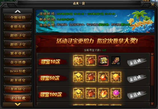 活动说明:活动期间,在龙族寻宝中,寻宝次数达指定次数,即可领取额外大礼。