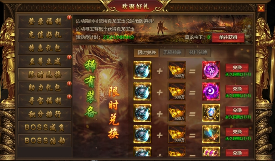 活动内容:活动期间可使用真龙宝玉兑换绝版道具