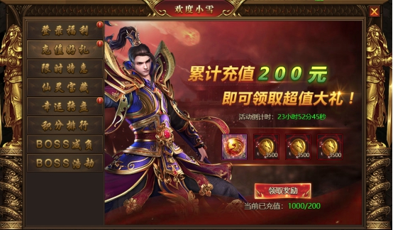 1.活动期间,玩家每日充值20、200、500元、1000元,均可领取超值大礼;